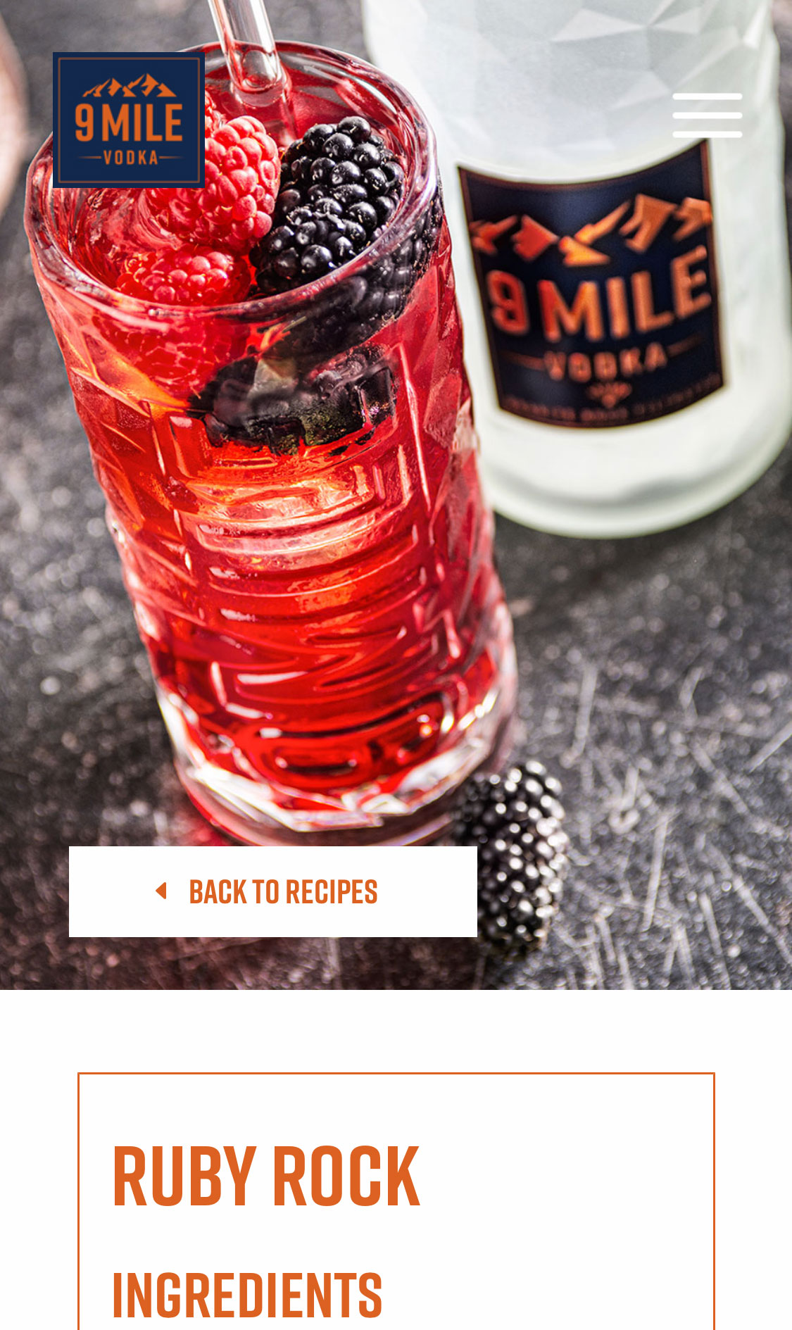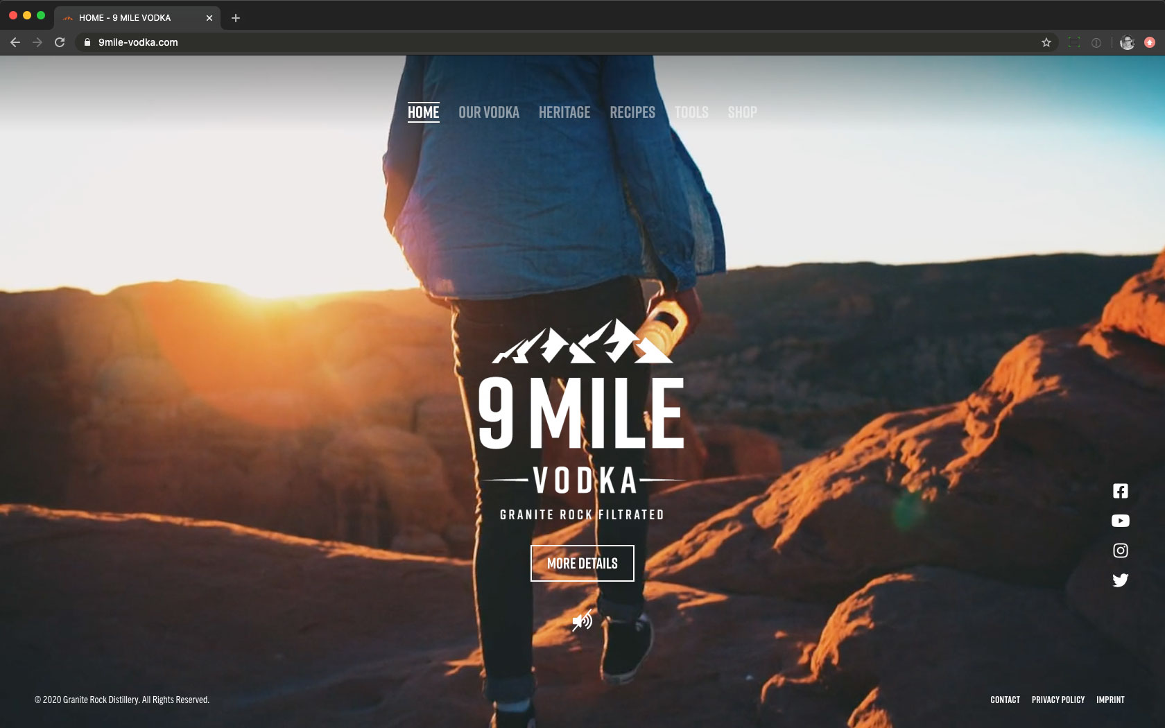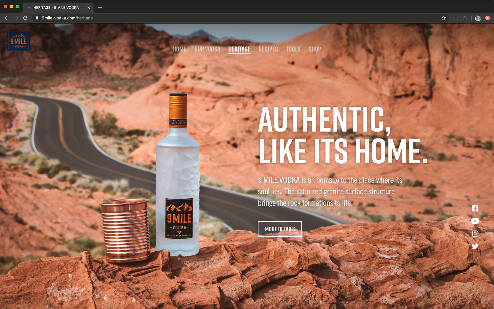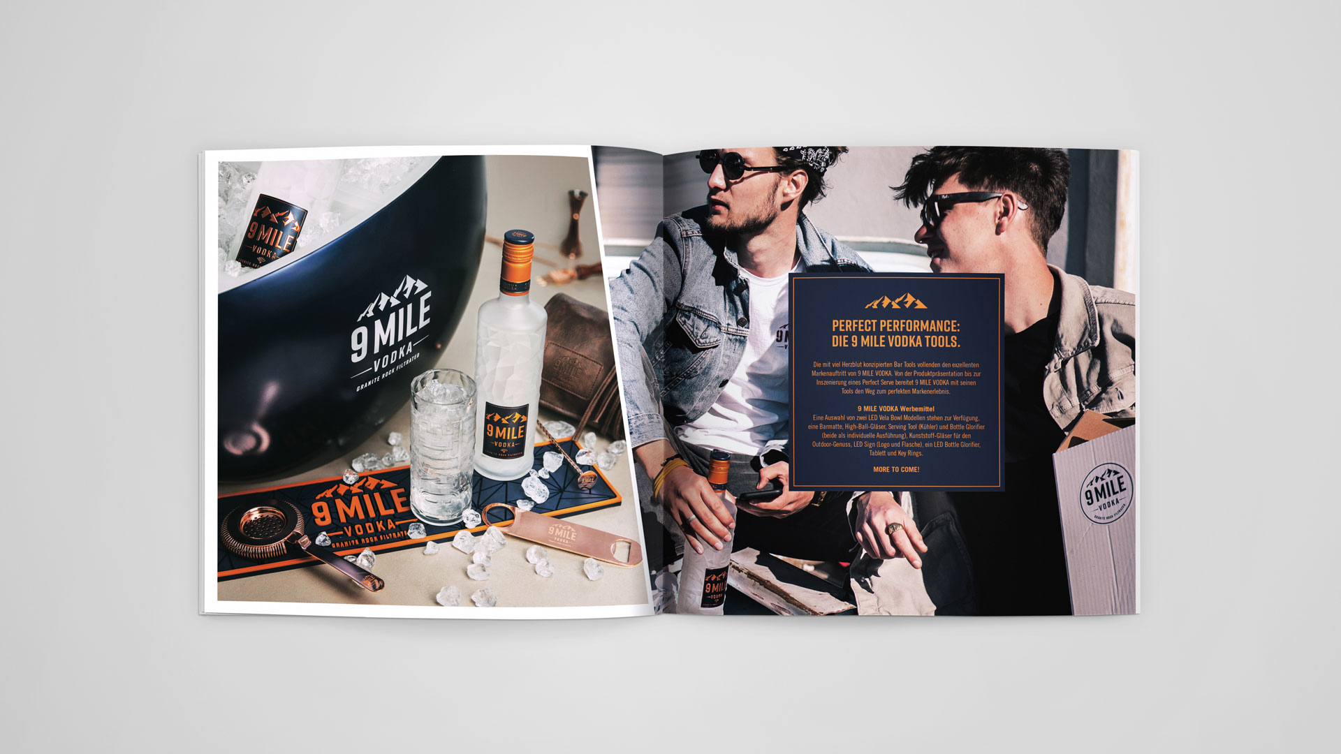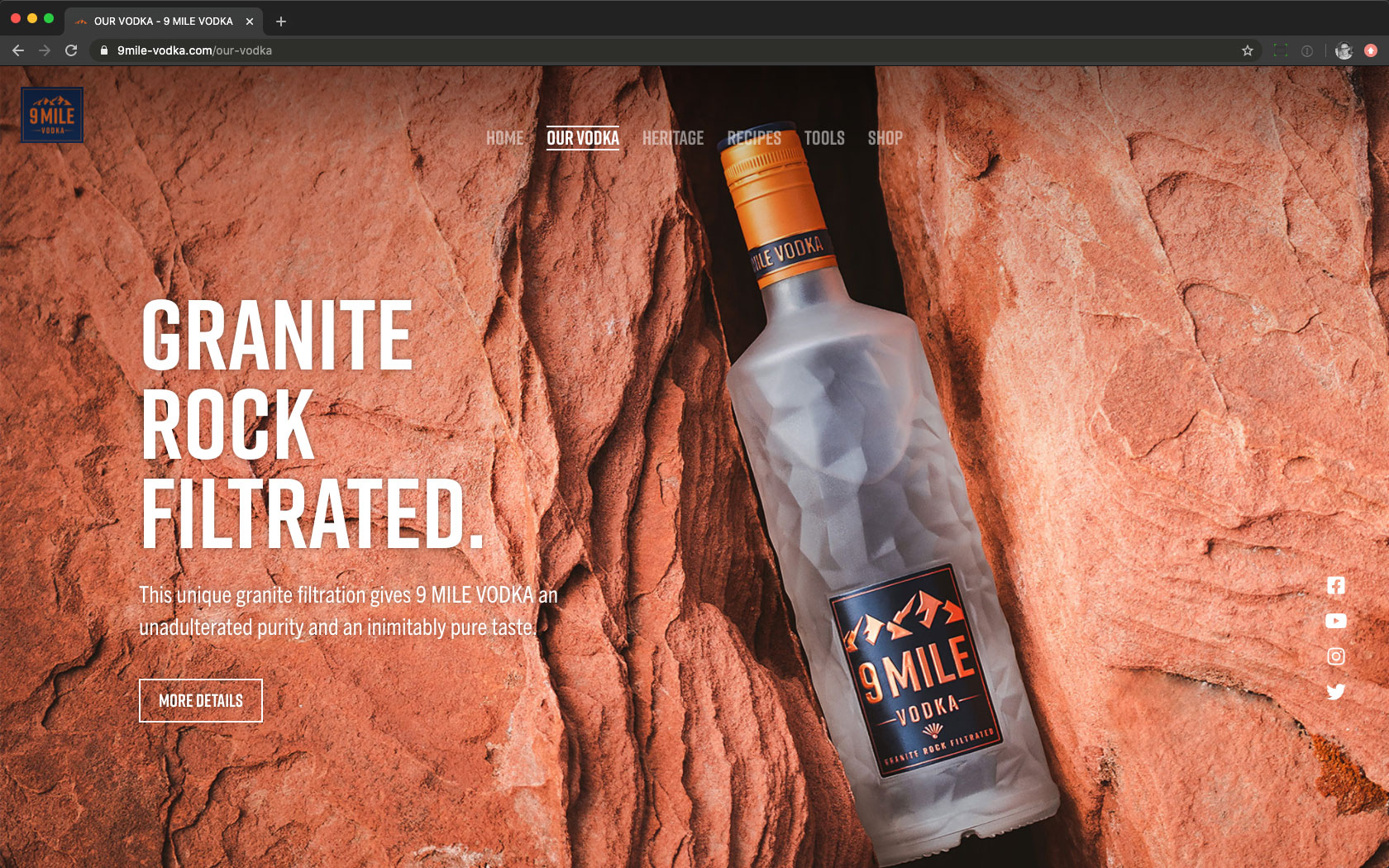 9 MILE Vodka ist besonders mild im Geschmack und wird mit hochwertigsten Zutaten hergestellt. Ein Road Trip durch den mittleren Westen der USA diente als Inspiration für die Geburtsstunde der Marke. Das Packaging ist eine Hommage an den atemberaubenden Nine Mile Canyon in Utah. Bei der Herstellung durchströmt der 9 MILE Vodka die rosa marmorierten Granitsteine und offenbart so seinen unverwechselbaren, unverfälschten und glasklaren Taste.