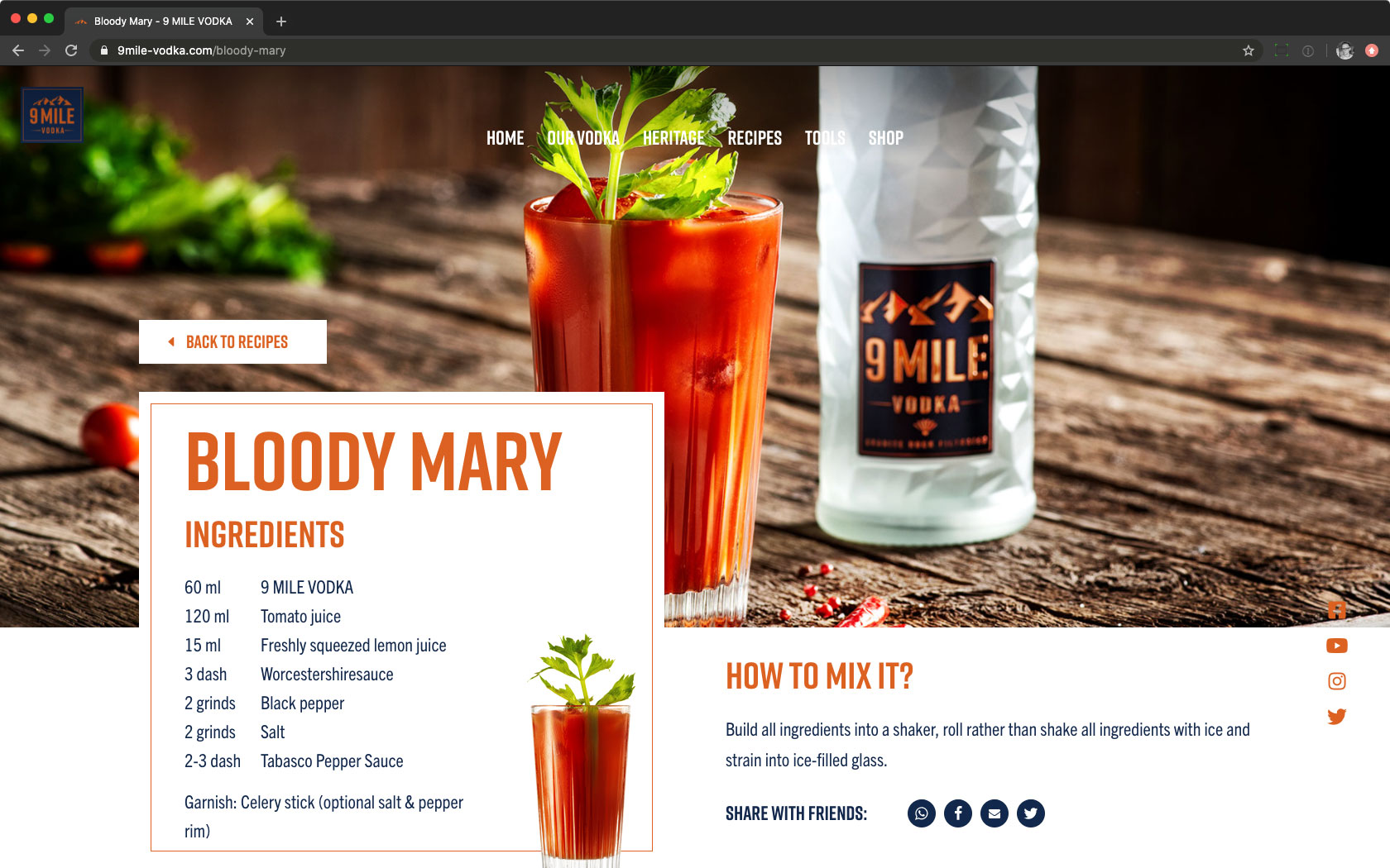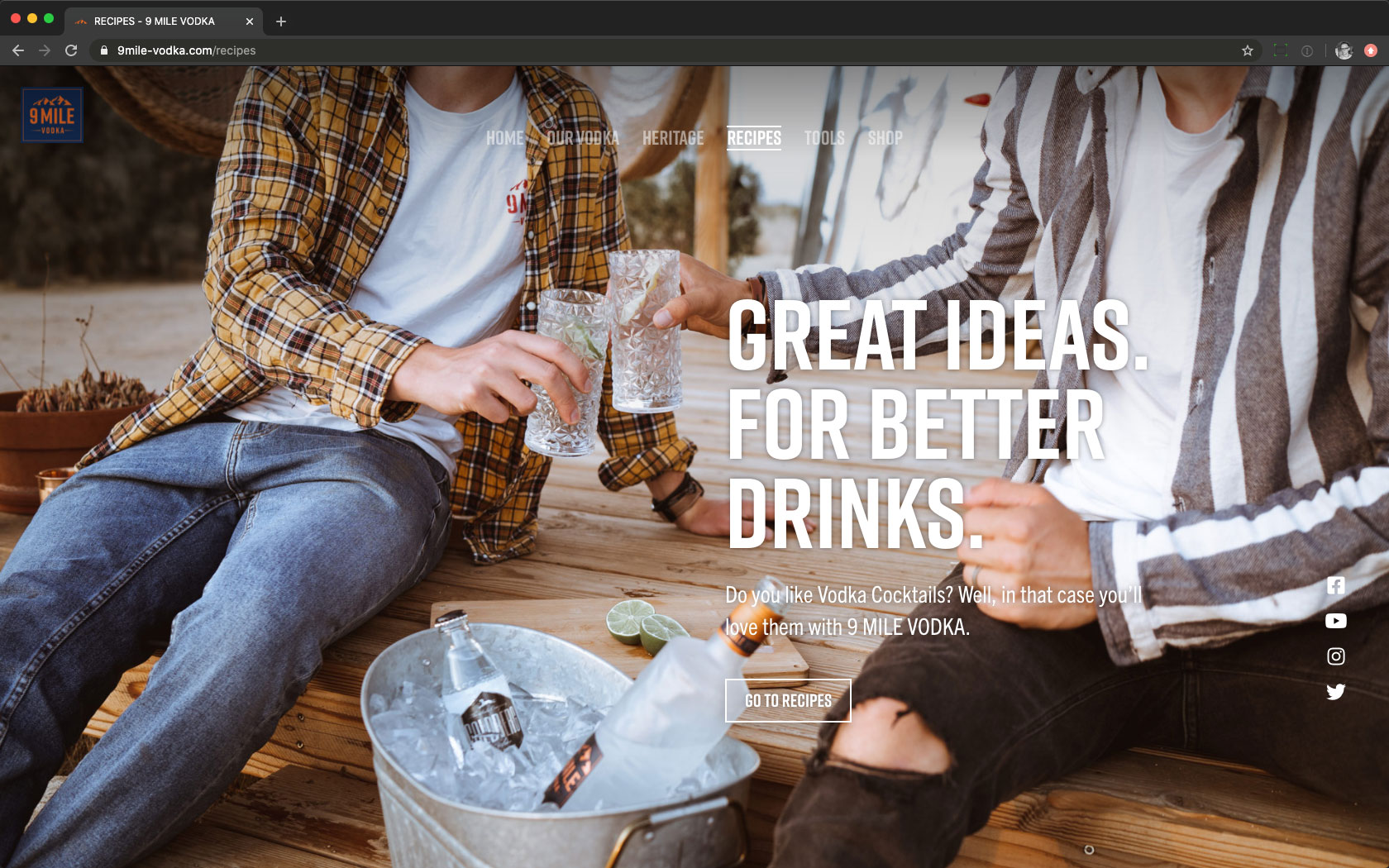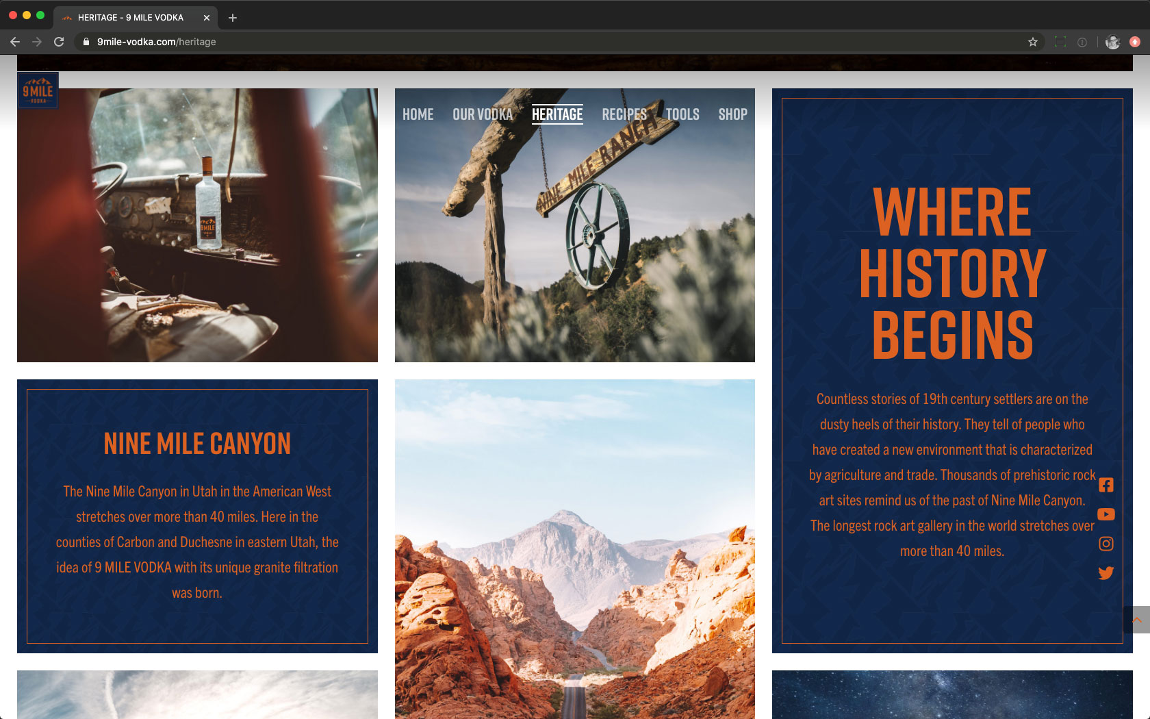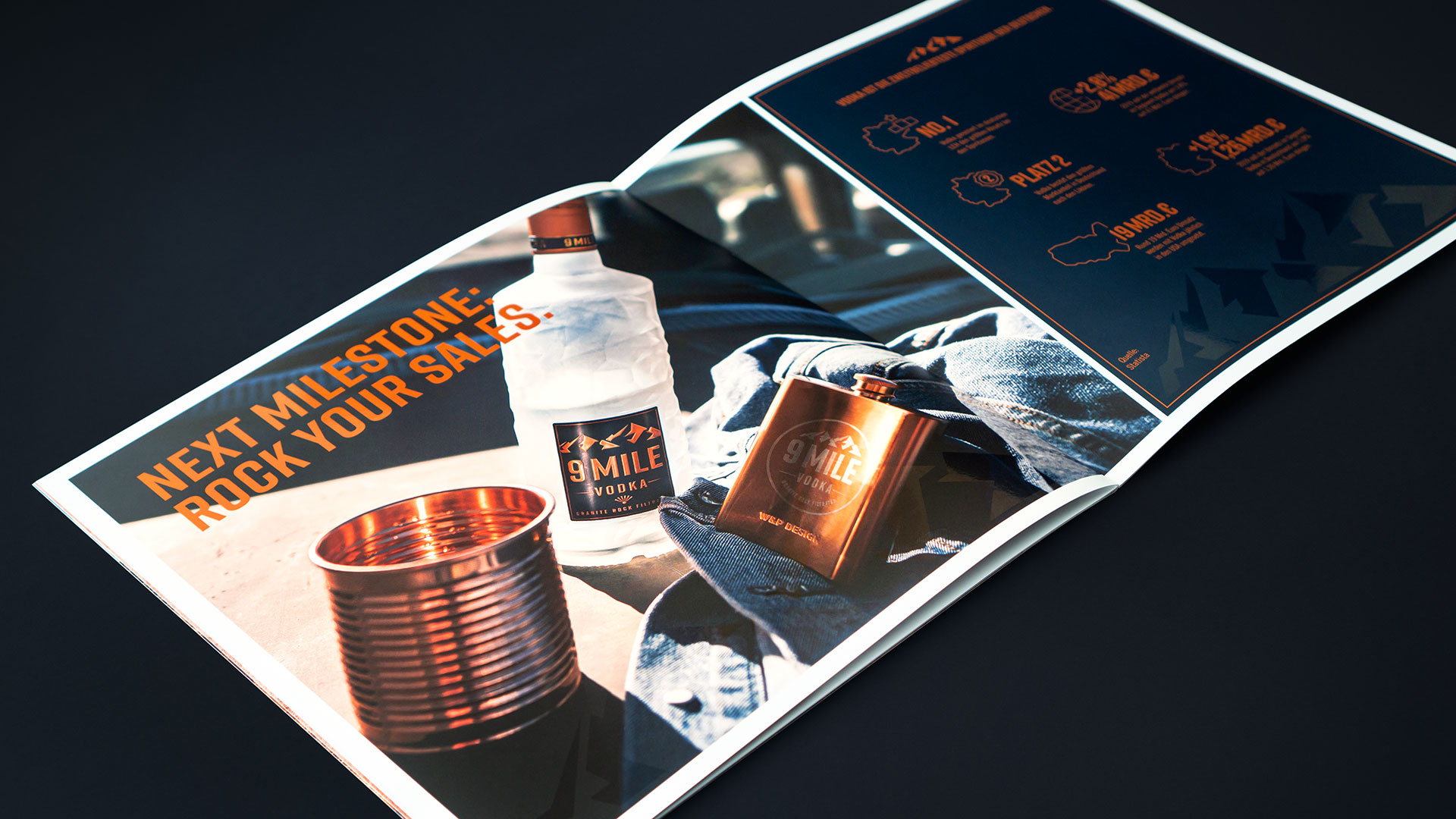 9 MILE Vodka ist besonders mild im Geschmack und wird mit hochwertigsten Zutaten hergestellt. Ein Road Trip durch den mittleren Westen der USA diente als Inspiration für die Geburtsstunde der Marke. Das Packaging ist eine Hommage an den atemberaubenden Nine Mile Canyon in Utah. Bei der Herstellung durchströmt der 9 MILE Vodka die rosa marmorierten Granitsteine und offenbart so seinen unverwechselbaren, unverfälschten und glasklaren Taste.
