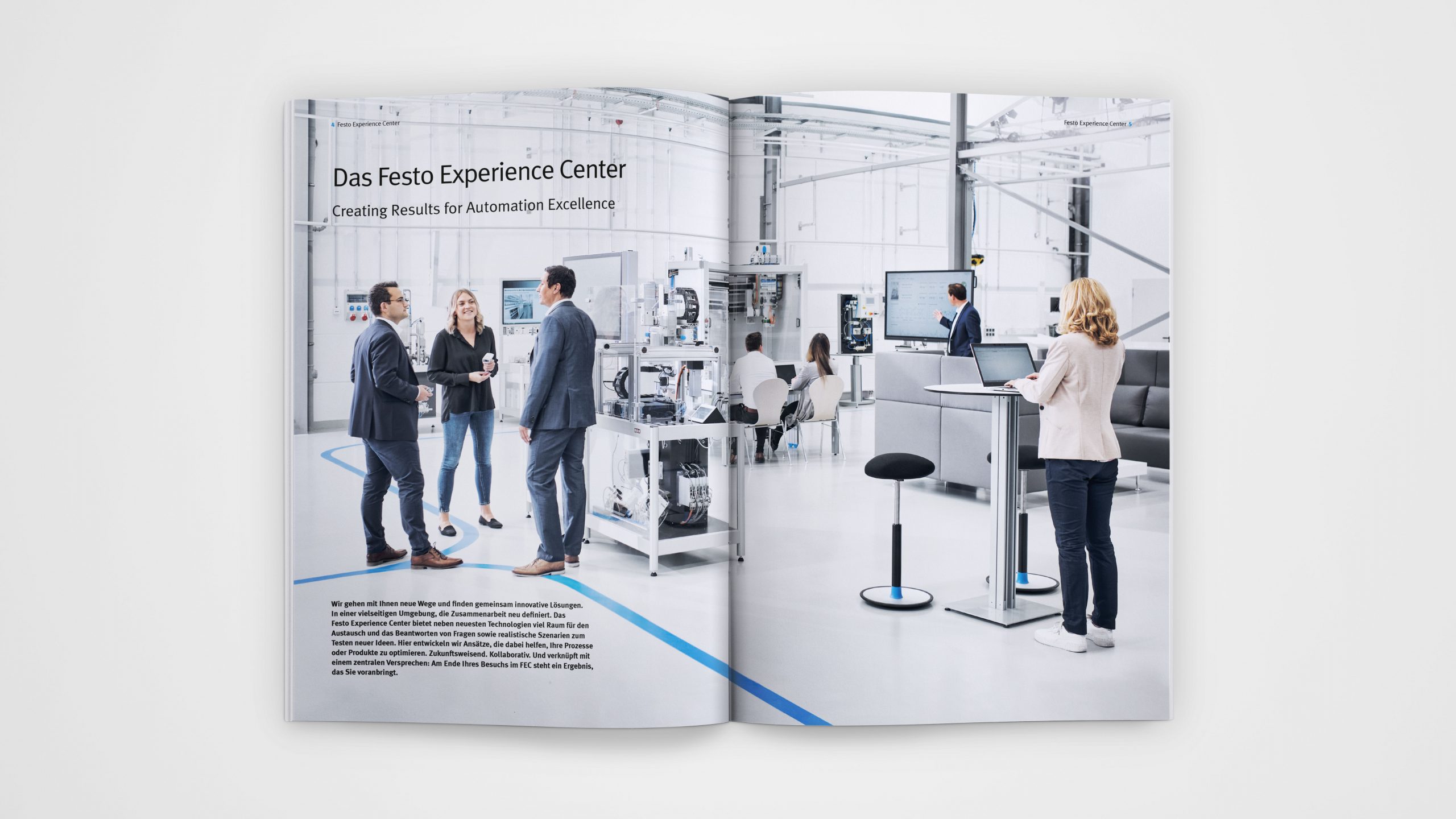 Exzellente Lösungen in der Automation sind abhängig von vielen Faktoren. Die Wahl der richtigen Technologie ist ebenso entscheidend, wie das Wissen um Märkte, Trends und relevante Branchenthemen. Das FEC ist ein neuer Ort, an dem Festo Experten mit Kunden und Partnern gemeinsam an neuen Lösungen arbeiten. Unsere Aufgabe war es, ein Kommunikationskonzept zu erarbeiten, das ein zentrales Versprechen an die Kunden bereitstellt und die vielfältigen Mehrwerte leicht verständlich kommuniziert.