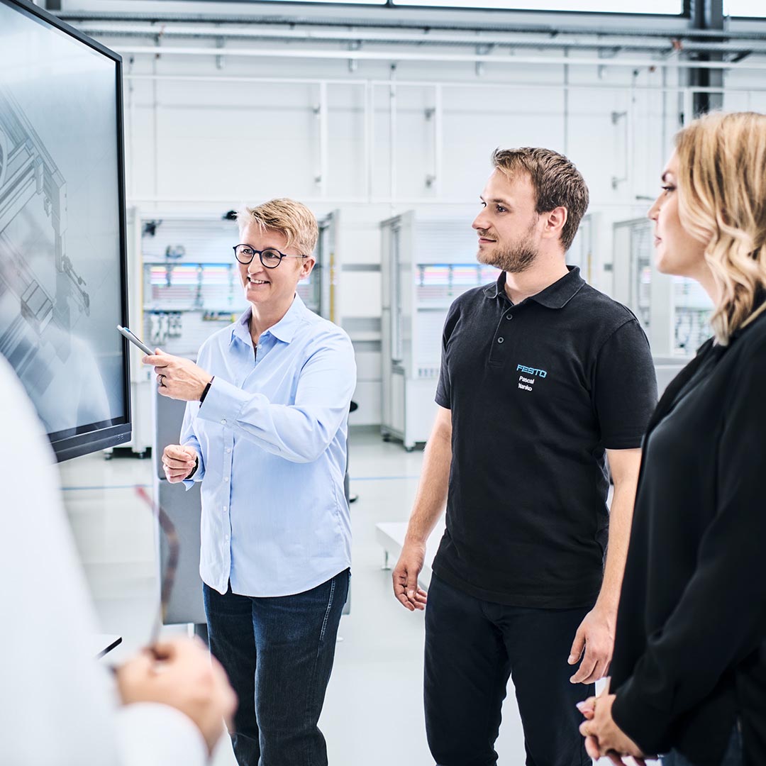 Eine Lösung beginnt mit einer Idee und wird nutzbar mit der erfolgreichen Umsetzung. Wir stellen dafür die richtigen Fragen, analysieren die entscheidenden Erfolgsparameter und planen Projekte in effizienten Prozessen. Im neuen Festo Experience Center definieren wir gemeinsam den besten Weg, damit Ihr Vorhaben zur exzellenten Lösung wird.