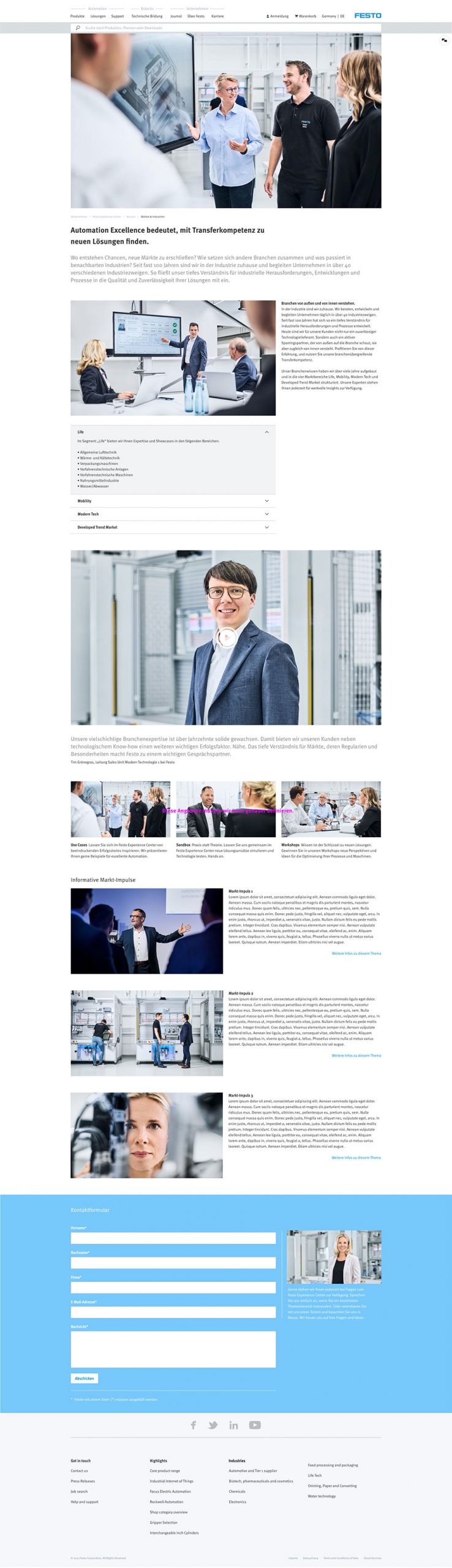 Leistungen Beratung, Konzeption, Limbic®, Claim-Entwicklung, Text und Lektorat, Innenraumgestaltung, Broschüre, Einladungen, Social Media, Landingpage, Präsentationen, Imagefilme, Event-Dokumentation, Fotoshooting, Bildproduktion Kunde Festo Vertrieb GmbH & Co. KG
