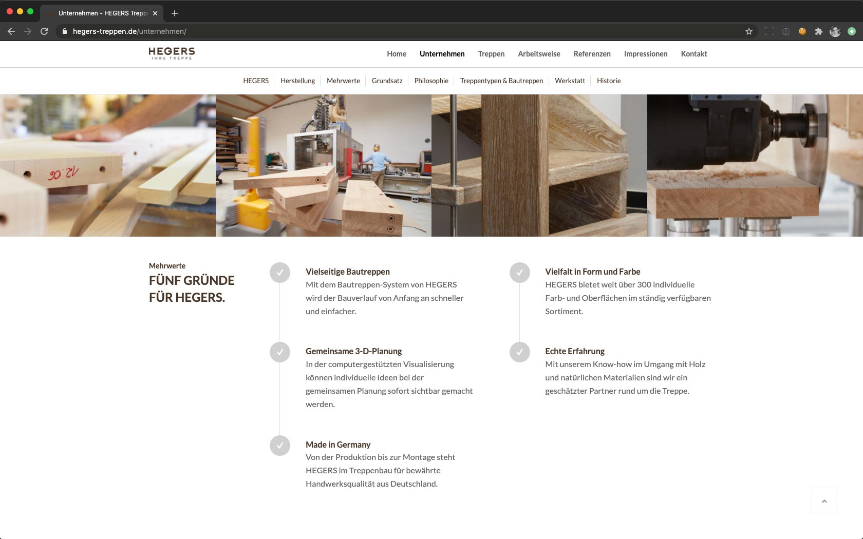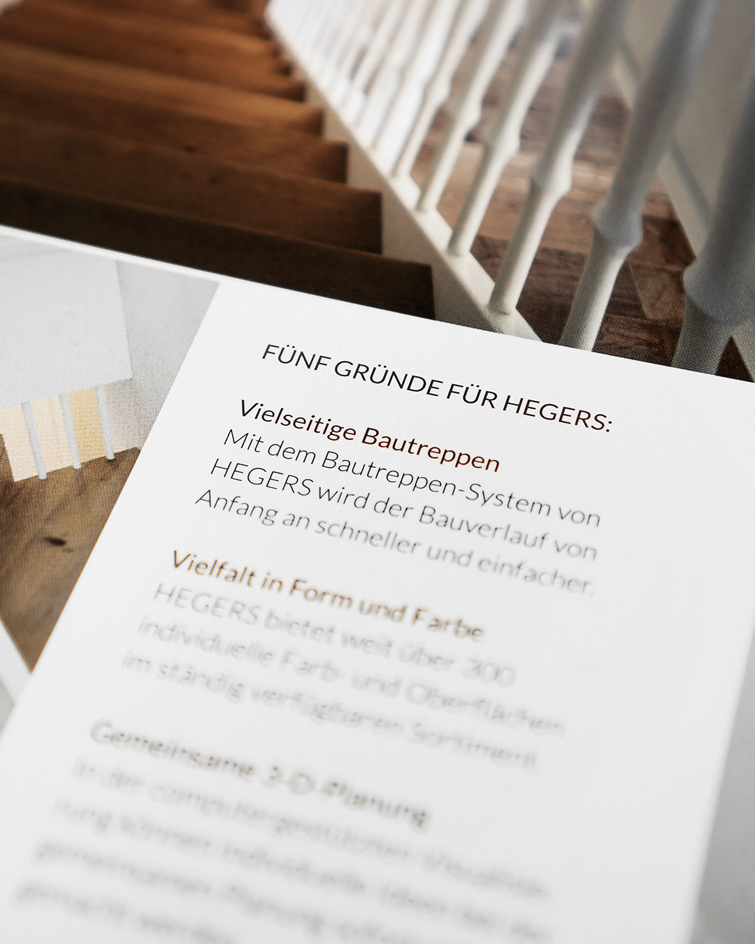 Leistungen Strategie, Markenstory, Markenentwicklung, Kommunikationskonzept, Designsystem, Bildwelt, Sprachstil, Text, Geschäftspapiere, Imagebroschüre, Website Kunde HEGERS Holzverarbeitungs GmbH