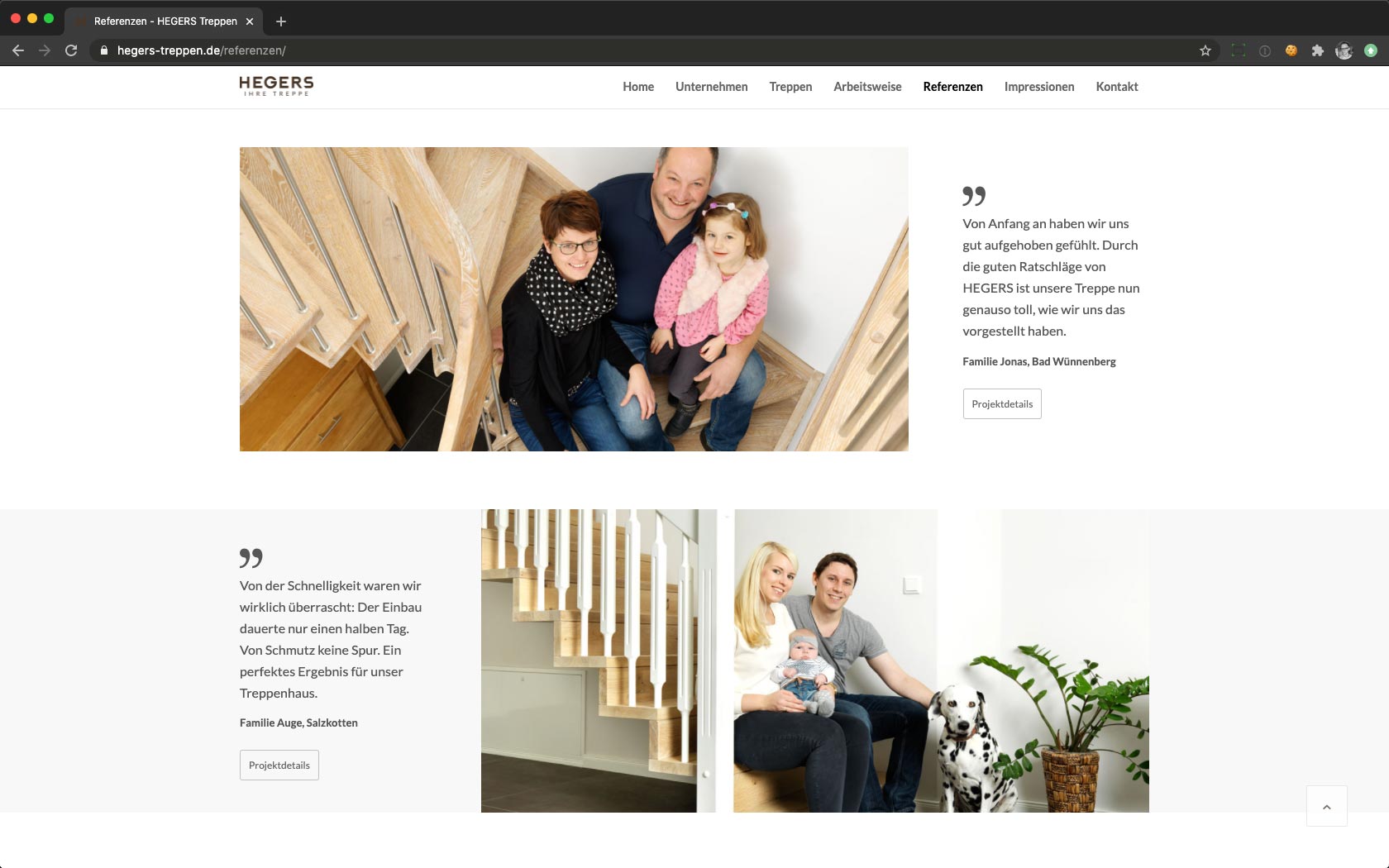 Treppenbauer gibt es viele. Aber aus unserer Sicht nur wenige, die mit so viel Leidenschaft, Spezialisierung und absoluter Zuverlässigkeit arbeiten. Und da man eine Treppe in der Regel nur einmal in seinem Leben kauft, ist der richtige Partner für den Kunden besonders wichtig. Diese Botschaft haben wir in einer neuen Markenstory und einem zeitgemäßen Design authentisch erzählt.