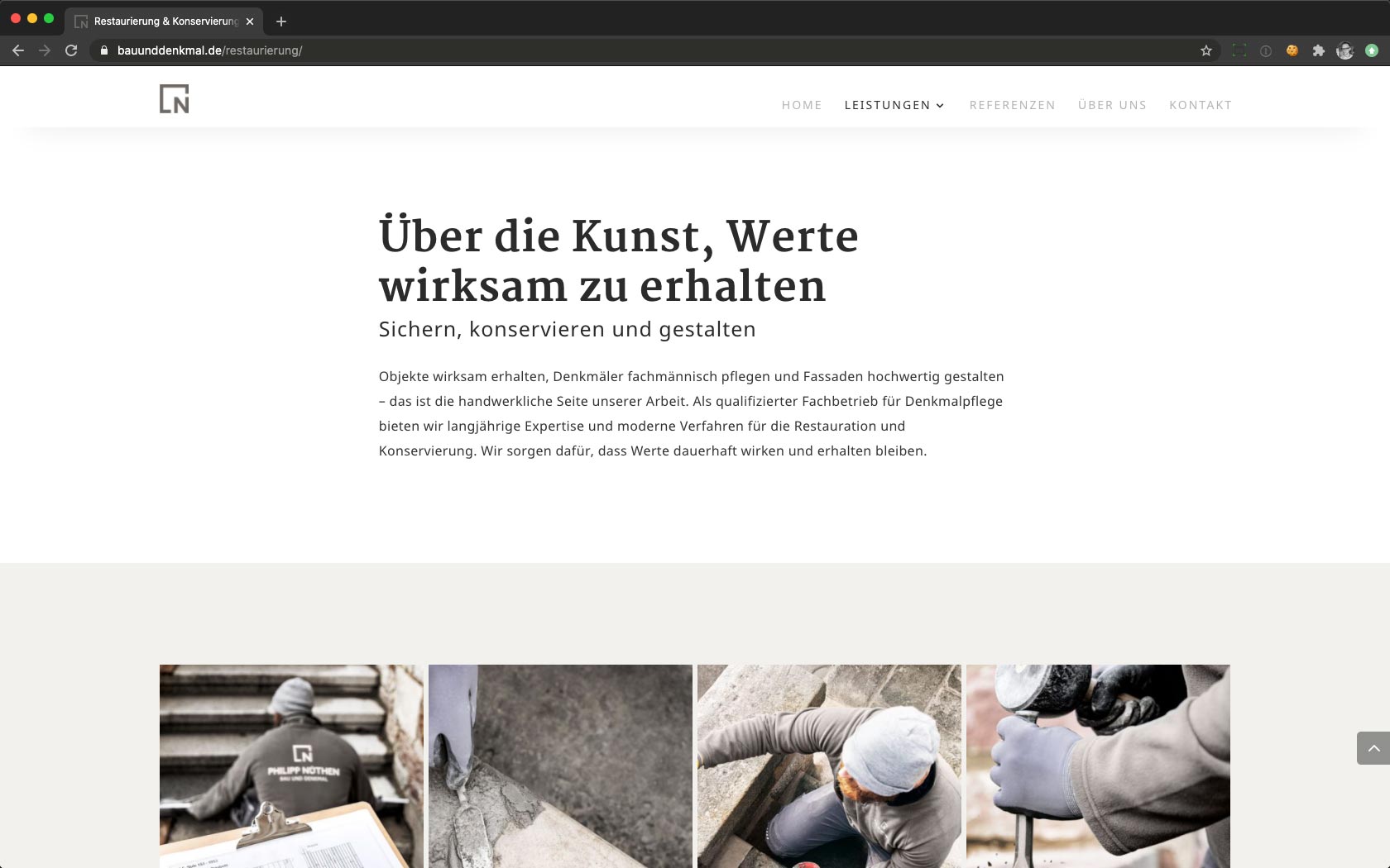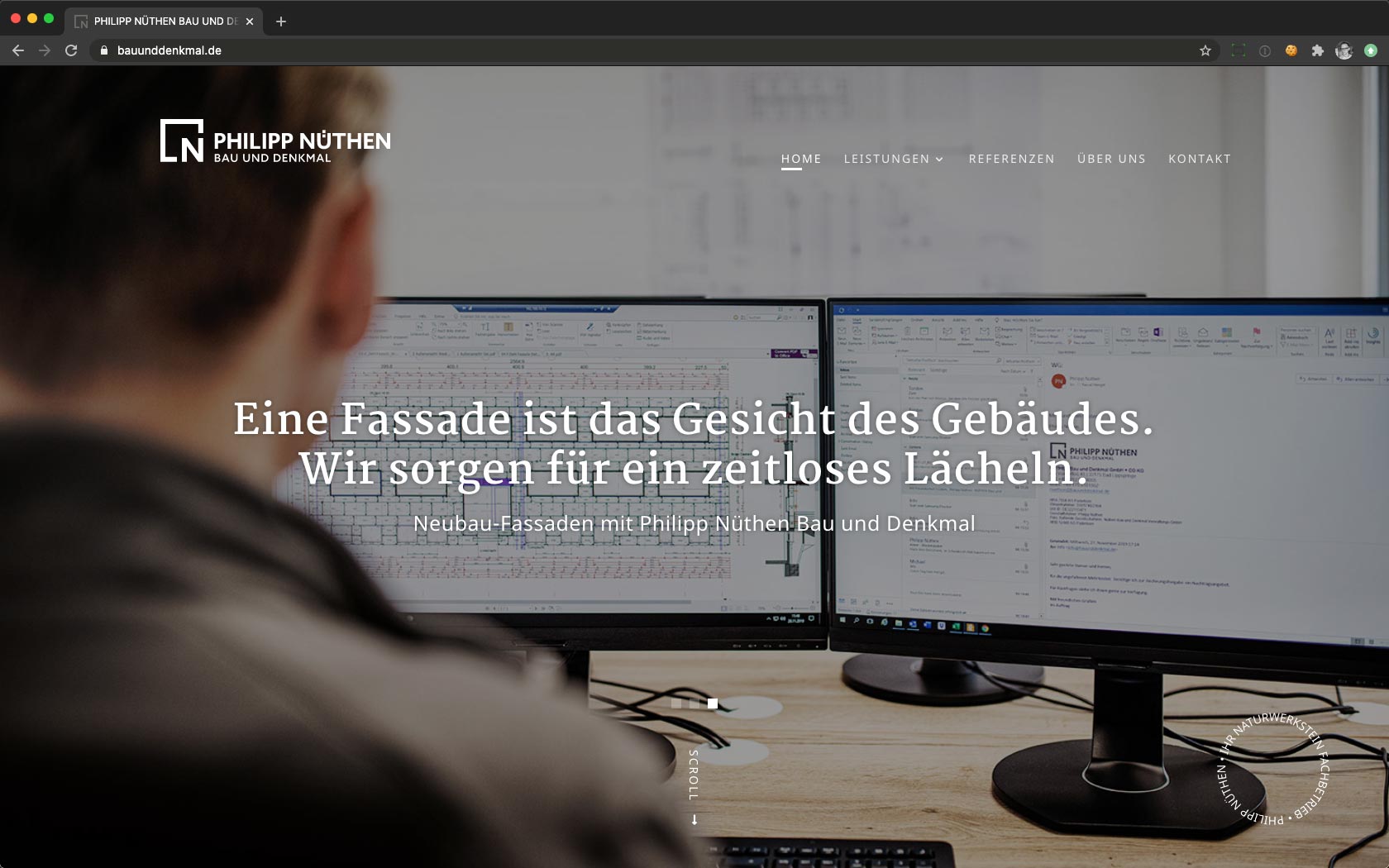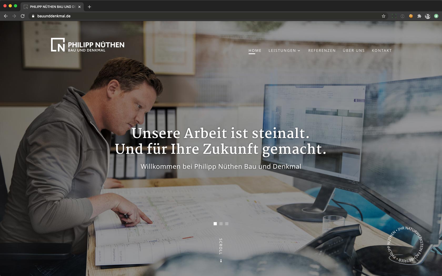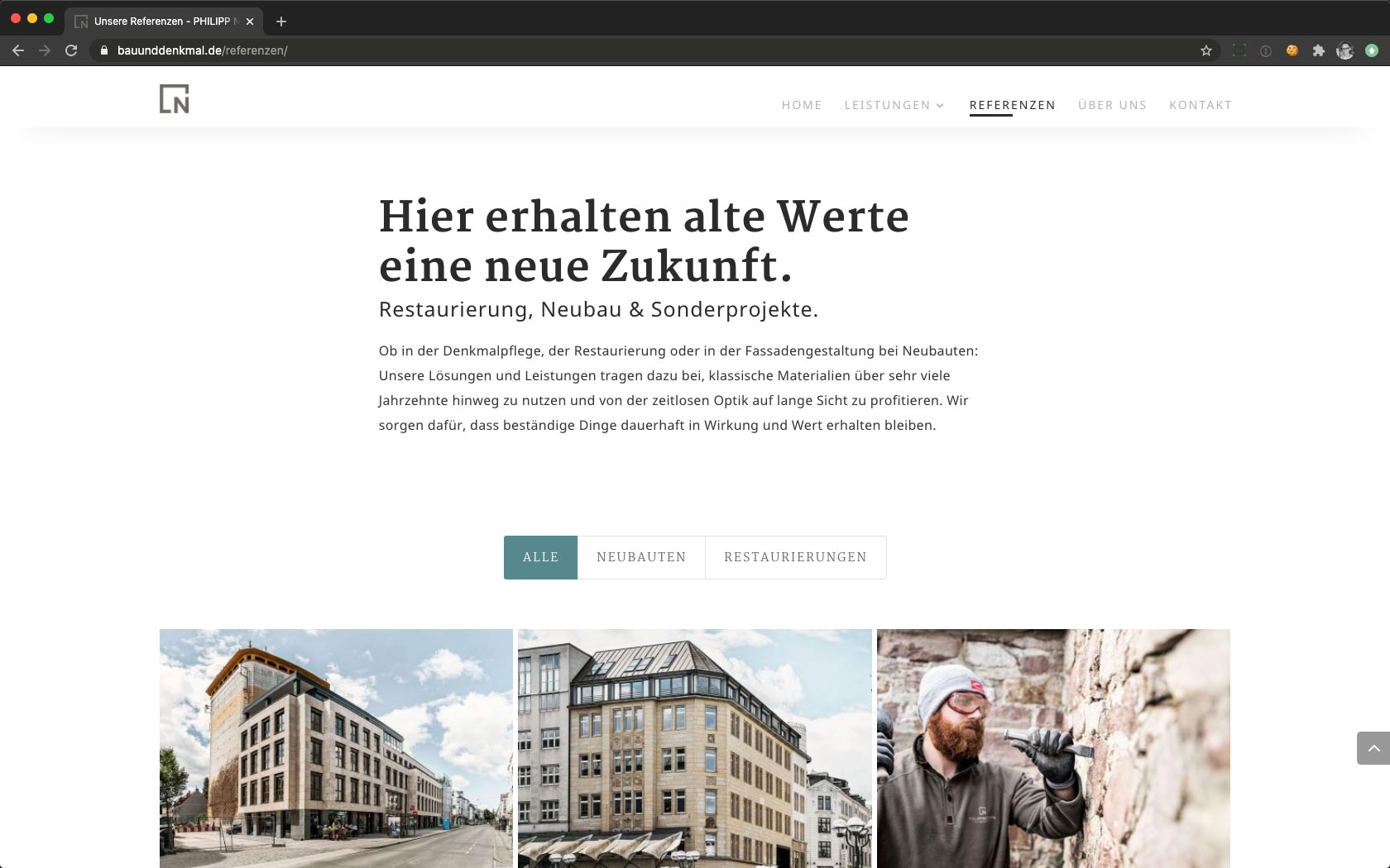 Leistungen Strategie, Markenstory, Markenentwicklung, Kommunikationskonzept, Limbic-Beratung, Designsystem, Bildwelt, Sprachstil, Text, Geschäftspapiere, Imagebroschüre, Anzeigen, Website, Außenwerbung Kunde PHILIPP NÜTHEN Bau und Denkmal GmbH & Co. KG