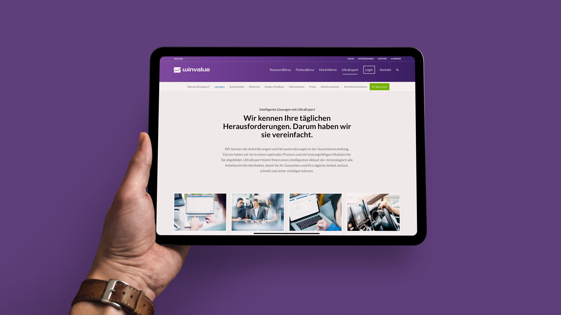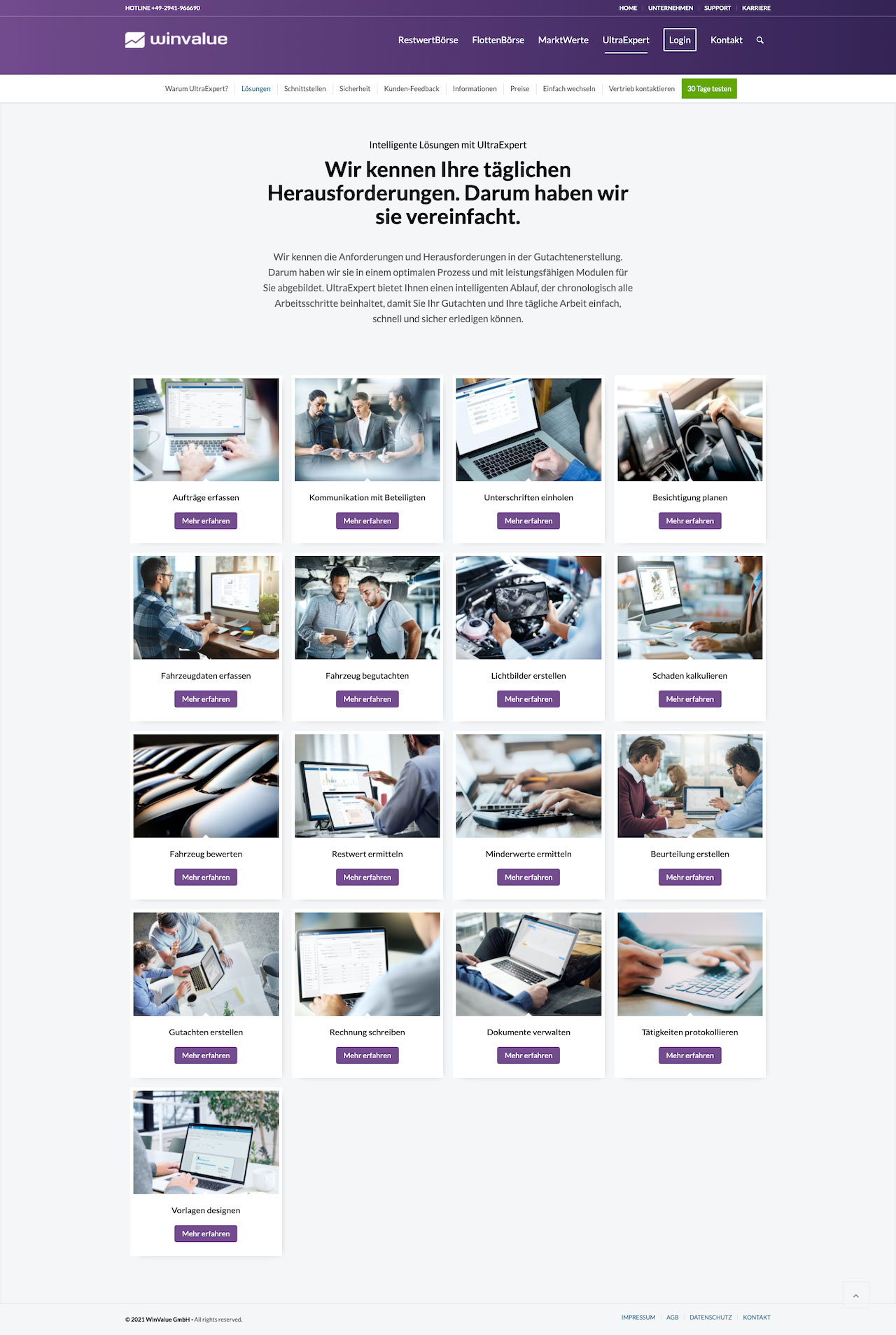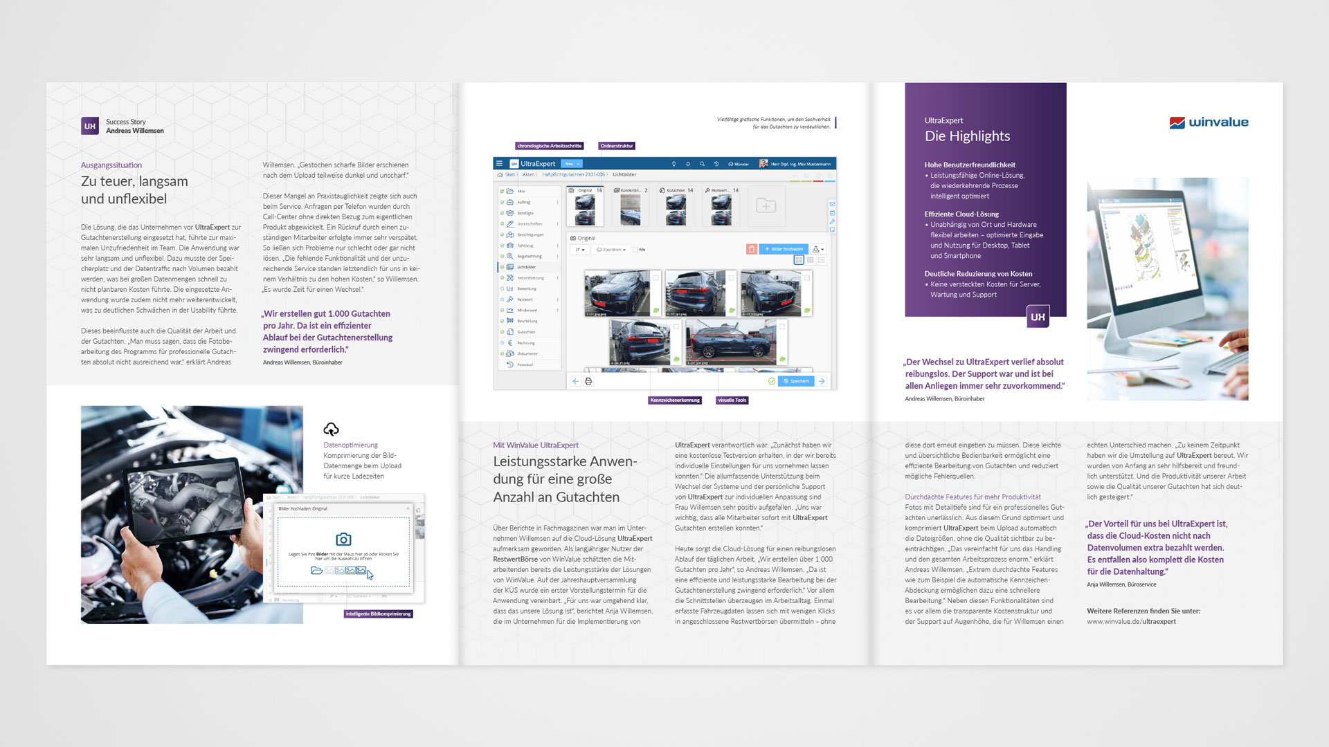 UltraExpert ist eine besonders leistungsfähige Online-Lösung von WinValue für Kfz-Sachverständige. Von der intelligenten Kontakt- und Terminverwaltung über den Schriftverkehr bis zur zuverlässigen Gutachtenerstellung und das Rechnungswesen sind sämtliche Funktionen in einem System integriert. Unsere Aufgabe war es, über Limbic® ein tiefes Verständnis für die Zielgruppe zu entwickeln, die relevanten Mehrwerte der Lösung zu identifizieren und zielgerichtet zu kommunizieren.
